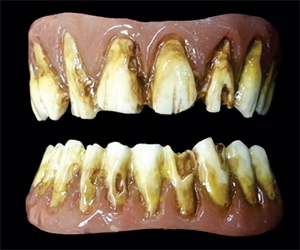Nothing will make you a convincing Zombie like a pair of these rotten dental veneer teeth from Dental Distortions. Hand-painted stains on the teeth give them the finishing look that only a custom pair could do, and make you a member of the living dead.