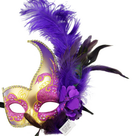 Purple and Gold mask mwith Purple feathers