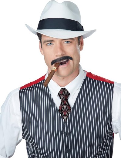 This is what's best for business. The Gangster 'Stache is a brown self-adhesive moustache. Note, product will require an additional appropriate adhesive for extended wear.