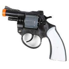 This small detective pistol will fit easily in any holster. 8 Shoter Revolver, white and black with oranf safty tip