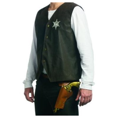 Includes: Plastic Gold Revolvor (colt 45), Brown gun holster ans Sheriff Badge