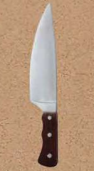 Silver butcher knife has a rustic wooden-look handle. All made of safe plastic. Perfect addition to many horror costumes! 13 inches long