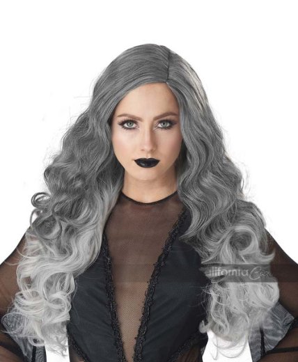 The Dark Angel is a long wavy wig with a blend of dark and light grays.