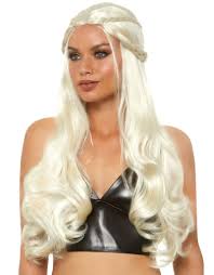 32 Inch long wavy blonde wig with two braids encircling the top of the head