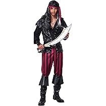 He pirates and plunders without mercy. The Ruthless Rouge pirate costume is comprised of a suede styled vest with attached sleeves, pants, wrist cuffs, belt, boot covers, and head tie.