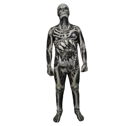Morphsuit you can see through,drink through, and party in. Skull and bones design.