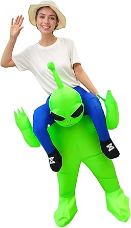 Inflatable Halloween alien costumes are the perfect way to make everyone laugh at your next party or event. This clever ride-on illusion makes it look like a big-eyed alien is giving you a piggyback ride. It stays inflated throughout your evening and is easy to put on and wear. Whether you're heading to a party or filming a fun video, this outfit brings comedy and creativity together.