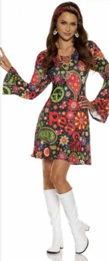 This 70s or 60's Hippie peace dress is Perfect For Halloween Parties, 60s And 70s Themed Events, Music Festivals, and Retro Dance Nights.