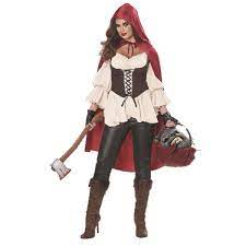 Mess with Red, end up dead. The Ain't Afraid a No Wolf costume is a combined corset style vest and shirt. It includes a cape in crushed red velour fabric.