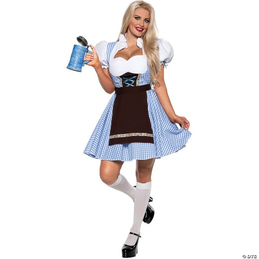 Includes: Blue Lace front Mini Dress with Puff Sleeves awith attached Apron