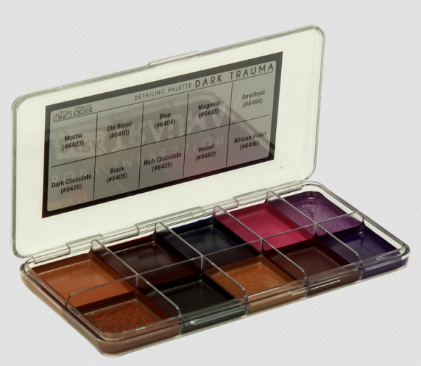 These palettes were created with all your basic trauma needs in mind. From fresh and aged injuries, to bruising new and old, you can create a world of superficial pain. This formula is more suitable for the palettes longevity and the models skin. Developed to withstand even the most extreme conditions, these concentrated pigments are ideal for creating a variety of effects.