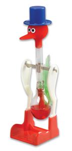 Perpetual motion duck drinks all the time! This is the famous duck who drinks on and on. His head pops into the water, up again, then down for more water - continuously. He comes complete with his own cup, ready to fascinate young and old. No spring, no wind up, just a mystifying drinking duck who is fun to watch!