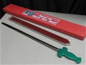 A sword is shown freely. Neck stock is displayed and sword is pushed to the centre. The stock is then placed around a volunteer's neck. Slowly and deliberately the sword is pushed through the volunteer's neck without any pain. This is pushed in such a way that both ends of the sword are always in full view. Completely mechanical in nature. Nothing to set. Comes ready to perform.